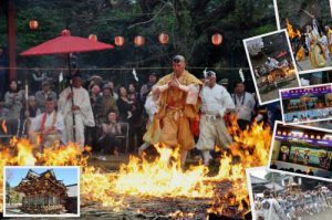 例大祭では、18日に奉納相撲大会、武州天野流妻沼太鼓などの催し、19日に柴燈大護摩さいとうおおごま・火渡り式が行われます。