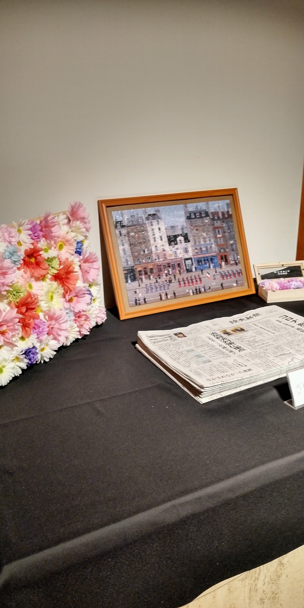 当館レストラン手前の新聞コーナーには、スッタフ手作りの館内装飾がございます。