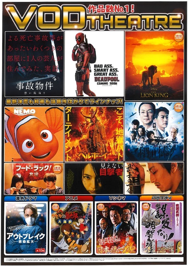 作品タイトル500品以上の邦画・洋画が1日中見放題!!