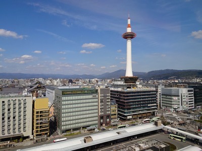お店の窓からは京都タワーを眺めることができ、また天龍寺や相国寺などの京都五山も見ることができます。