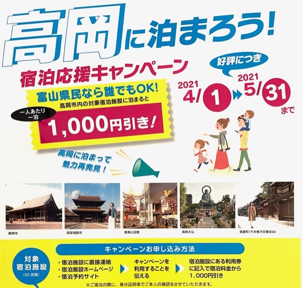 現在、当ホテルでは『高岡に泊まろう宿泊応援キャンペーン』を実施しております!