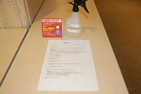 当館では、新型コロナウイルス感染拡大防止の観点から、チェックインの際に、お客様に検温と健康チェックシートのご記入をお願いしております。