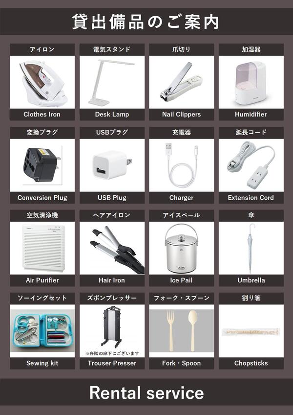 本日は、スマイルホテル東京西葛西の貸出備品をご紹介いたします!