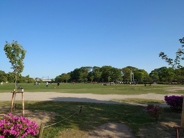 公園内には花や木々に囲まれ広々とした「芝生広場」や