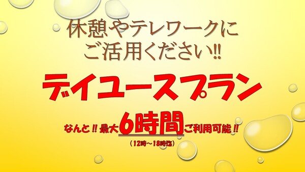 12時~18時まで最大6時間、滞在可能な日帰りプランです。