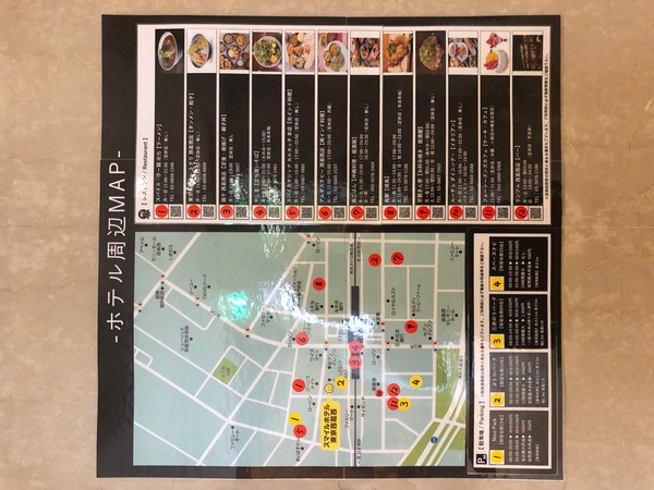 本日はフロントのあるホテル2階に掲示しております、ホテル周辺MAPをご紹介します。