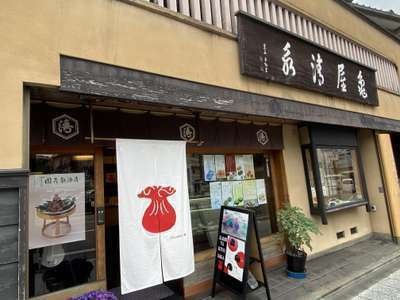 「亀屋清永」の代表商品といえば、のれんにも描かれている巾着型のお菓子、