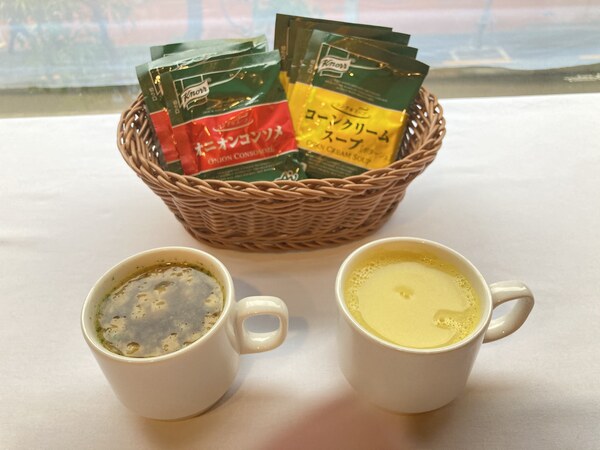 朝食メニューにオニオンコンソメスープとコーンクリームスープが加わりました!
