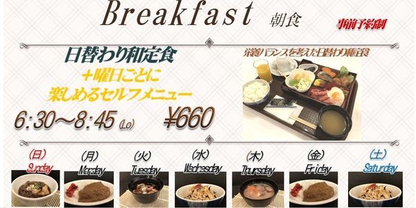 朝食時間:6:30~8:45LO(9:00クローズ)