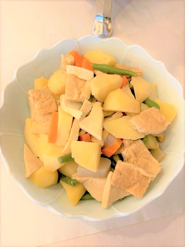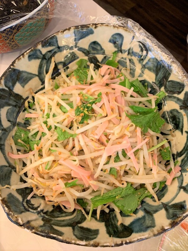 本日の一品料理は【もやしと水菜のシャキシャキサラダ・ほくほくジャガイモ煮・トマトの冷製パスタ】