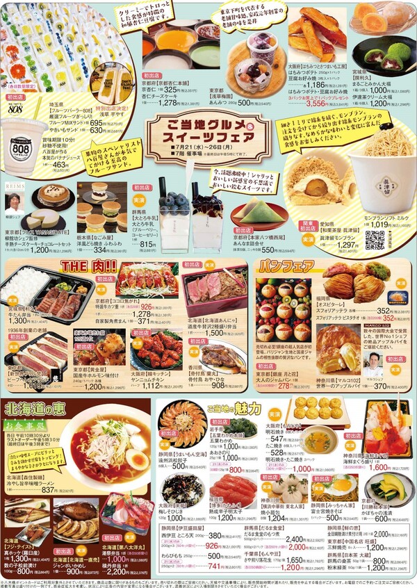 本日7/21より7/28まで「ご当地グルメスイーツフェア」が開催されます。