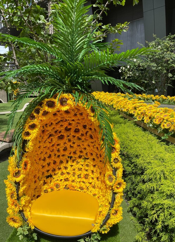 庭にひまわりがいっぱい装飾されており、夏を感じることができました。