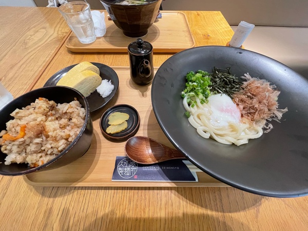 私はそこの名物であった、「天美卵釜玉うどん定食」を頼んでみました!