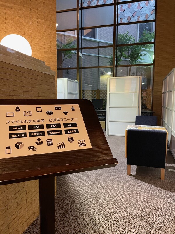 当館は、昨今のテレワーク需要の増加に伴い、今年度よりロビーの一角に、「ビジネスコーナー」を開放しております。