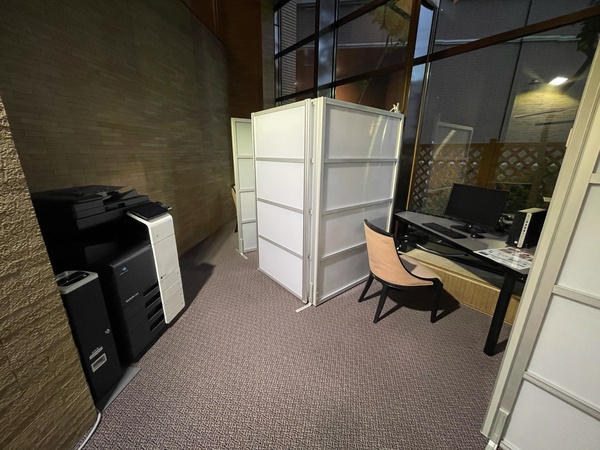 サービスの内容としては、パスワードありの個別Wi-Fiやコピー機を始め、簡易的ではございますが、仕切りを設けたことによる個別ブースなどもご用意しております。
