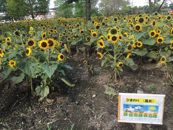 公園内には背丈の低い種類のひまわりが咲いていました。