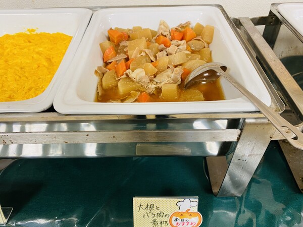 本日のご朝食のおすすめメニューは【豚バラ大根】です。お写真は少し見ずらいかもしれませんが、
