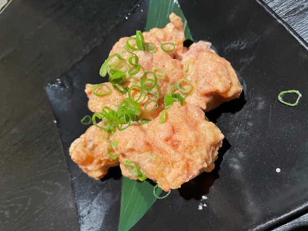 鶏の唐揚げでも充分に美味しいのに、あろうことかわかやさんは明太子をトッピングされていらっしゃいます・・・!