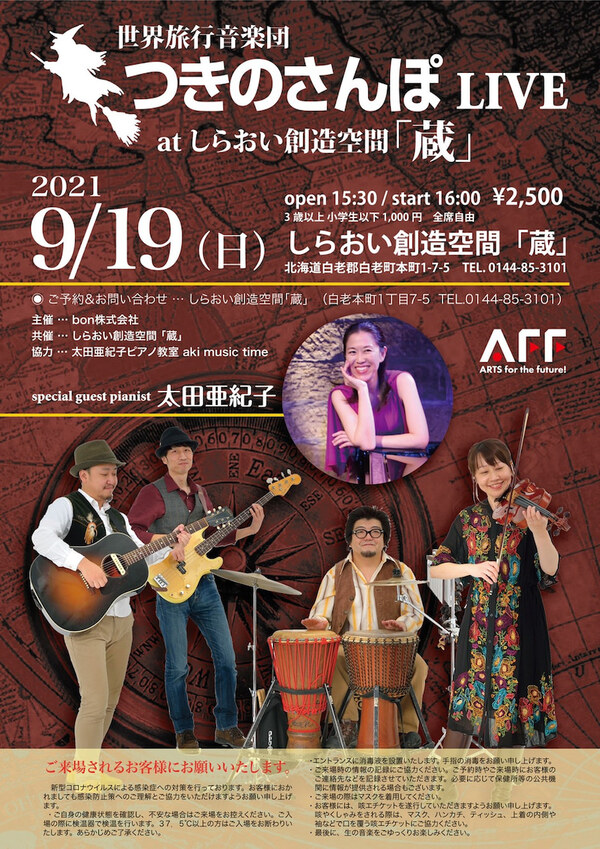 世界各国の民族音楽を演奏する札幌のバンド「つきのさんぽ」のライブ。