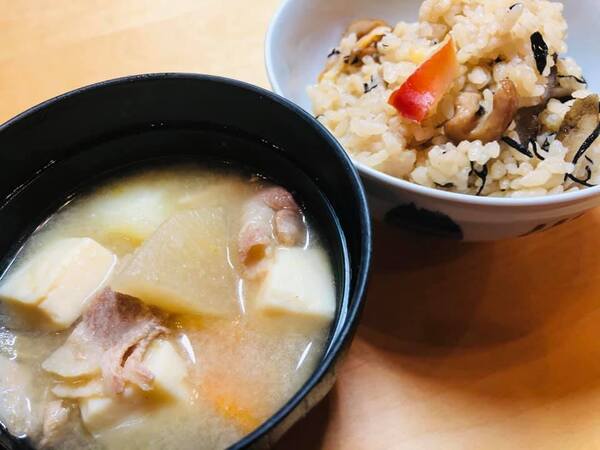 豚汁は野菜がたっぷりで、寒い朝も体が温まります♪