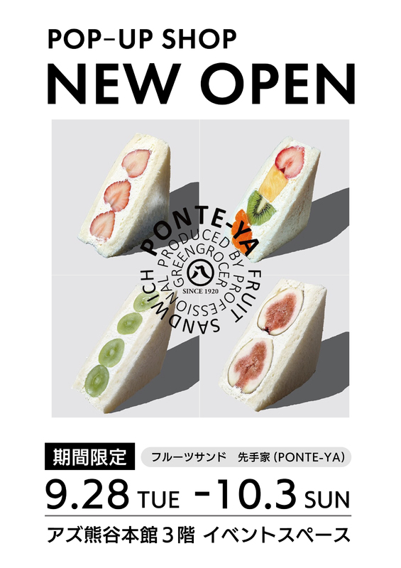 フルーツサンド「先手家(ポンテヤ)」が熊谷駅ビルAZ(アズ)に期間限定オープンしています。