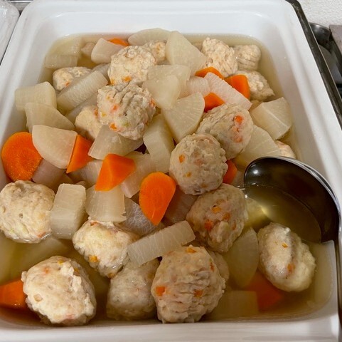 和風だしが効いた手作り新メニューです。その他にもエビフライやだし巻き卵などがありました。