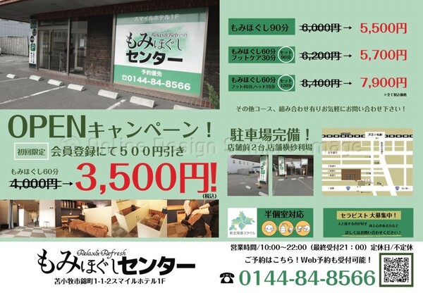 スマイルホテル苫小牧の1階にある、もみほぐしセンターさん、