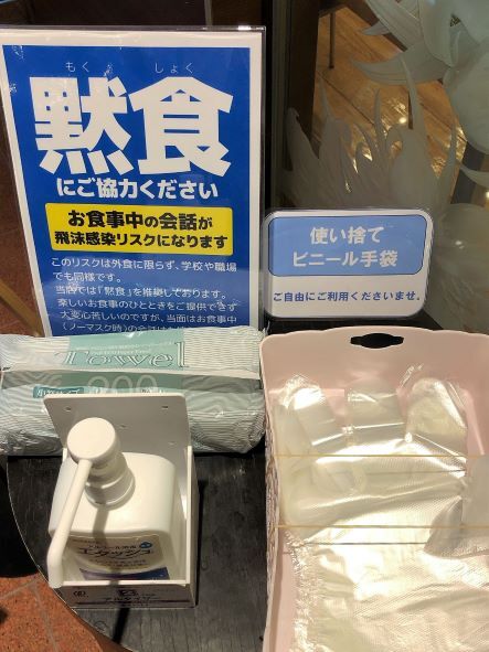朝食をご利用の際には、マスクおよびビニール手袋の着用、黙食など、