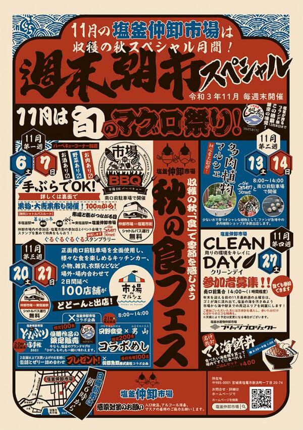 当ホテルからほど近い、塩釜市仲卸市場では11月の