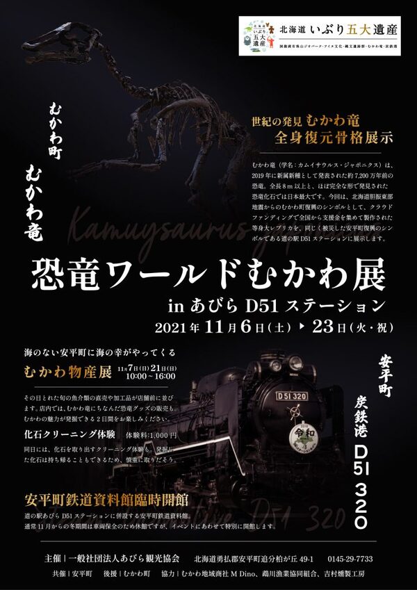 道の駅あびらD51ステーションでは11月6日(土)から23日(火・祝)まで、『恐竜ワールドむかわ展 in あびらD51ステーション』を開催します。