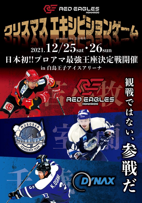 アイスホッケーアジアリーグのレッドイーグルス北海道が、道内社会人リーグ「Jアイスノースディビジョン」でプレーするダイナックス(苫小牧)、日本製鉄室蘭製鉄所「室蘭スティーラーズ」との2連戦を開催します。