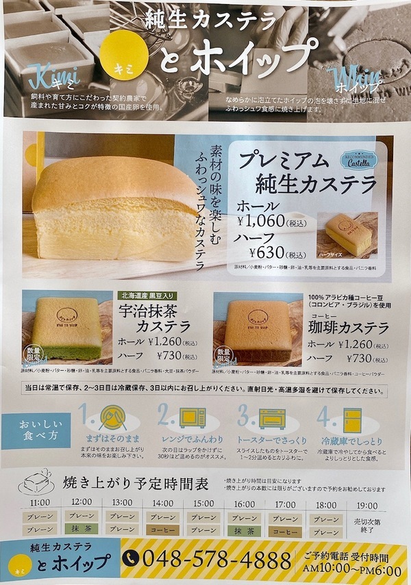 純生カステラキミとホイップは、名前の通り、キミ(卵黄)とホイップ(メレンゲ)にこだわった純生カステラ専門店です。