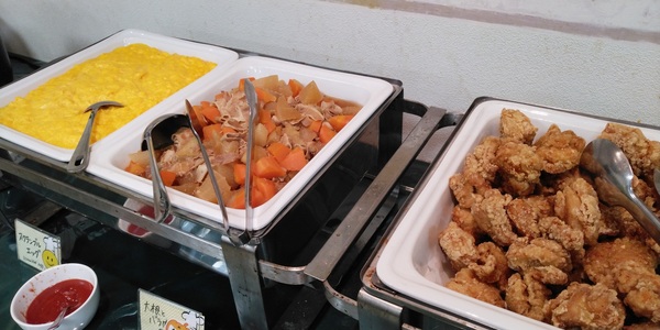 本日は、から揚げ、スクランブルエッグ、豚バラ大根などとなっております。