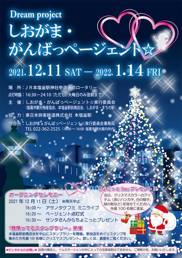 JR仙石線 本塩釜駅 神社参道口前に設置している花時計の周りを色鮮やかなイルミネーションで飾ります。