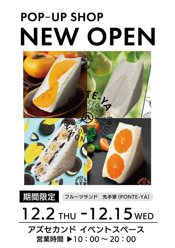 アズセカンドイベントスペースにて吉祥寺で大人気のフルーツサンド「先手家(ポンテヤ)」が期間限定OPEN!
