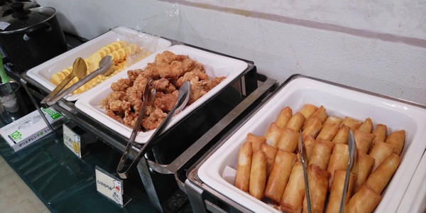 本日の朝食メニューは、鶏のから揚げ、春巻き、玉子焼きなどとなっております。