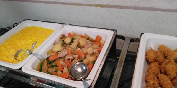 本日の朝食は肉じゃが、カキフライ、ベーコン、スクランブルエッグなどとなっております。