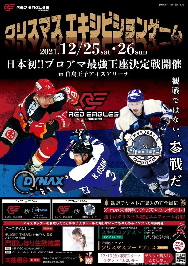 アイスホッケーアジアリーグのレッドイーグルス北海道が、道内社会人リーグ「Jアイスノースディビジョン」でプレーするダイナックス(苫小牧)、日本製鉄室蘭製鉄所「室蘭スティーラーズ」との2連戦を開催する。