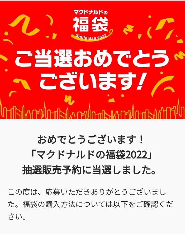 さて、私事ではありますが、以前、マクドナルドの福袋の抽選に応募してみたところ、見事当選しました!!