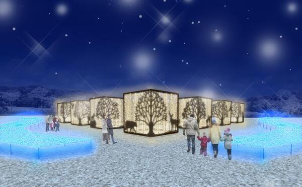 アイヌ文化にゆかりのある動物達をブロック型のイルミネーションで鮮やかに彩ります。