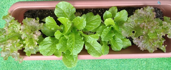 初めて家庭菜園をしてみました。サニーレタスとサンチュ栽培しています。