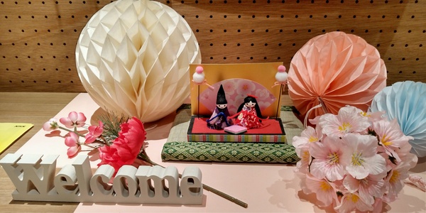 あと半月程で3月ということで、ちょっと早いですが当館ロビーをひな祭り仕様にしてみました!