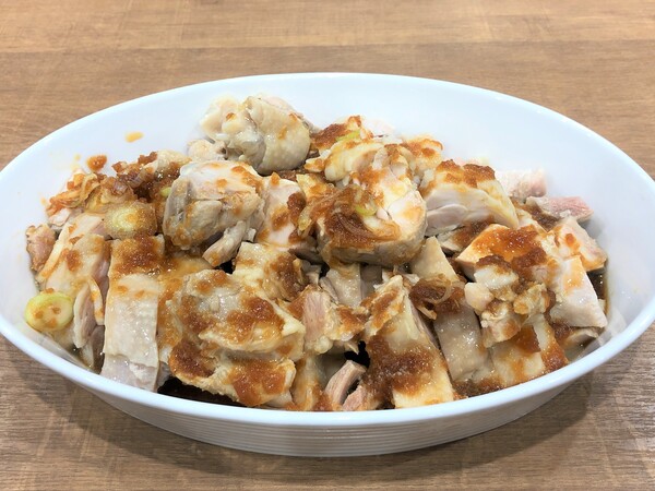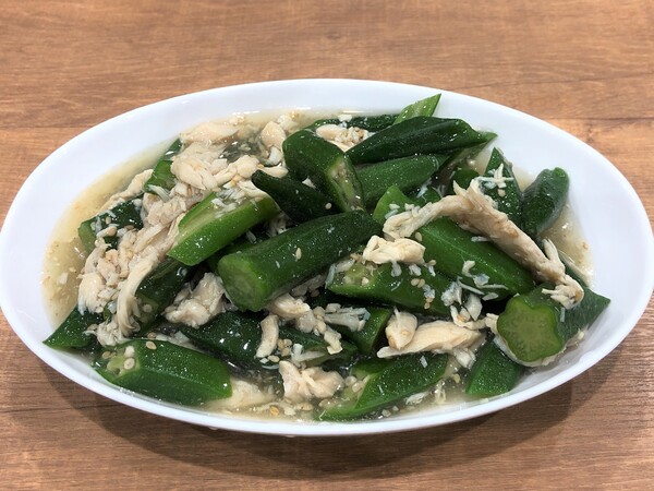 定番メニュー「オクラと蒸し鶏の柚子胡椒あん」です♪