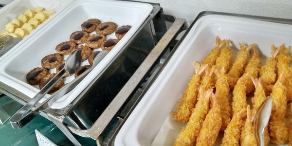 本日のご朝食メニューはハンバーグ、エビフライなどとなっております。
