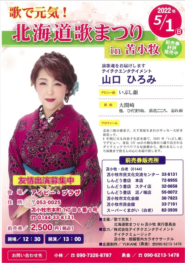 カラオケ愛好家やプロの歌手が出演する歌唱イベント「歌で元気!北海道歌まつりin苫小牧」が5