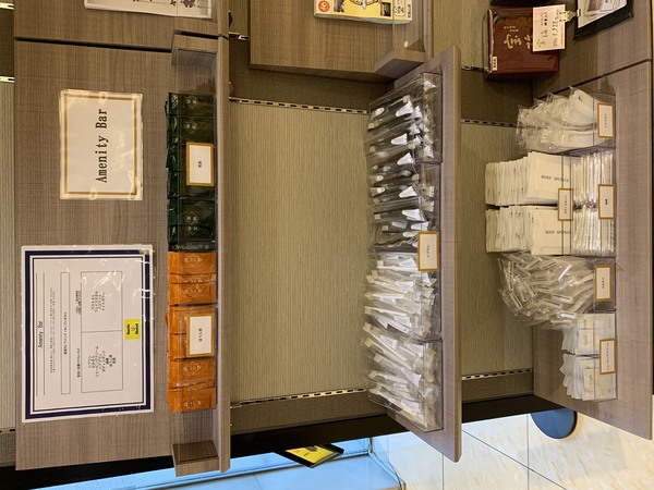 お手数ですが1FロビーにございますアメニティBARよりご入用分をお取りくださいませ。
