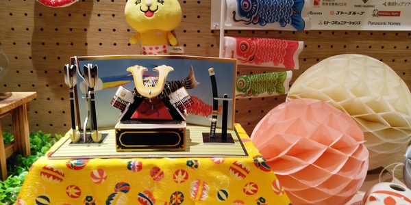 当館もゴールデンウィークらしく、お手製の兜と鯉のぼりを作成致しました。