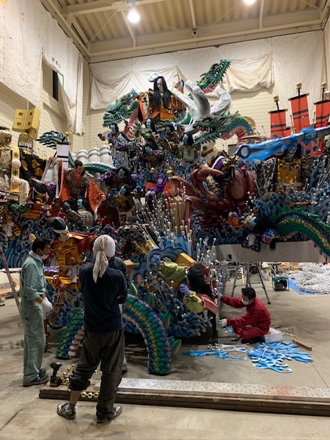 こちらは、2019年に、津軽地方に遠征する際の山車を作成しているところです。