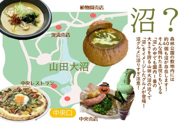 今回ご紹介するグルメは、当館より車で約15~20分ほどにある森林公園中央口売店にございます[沼]をイメージした美味しいグルメ達です。