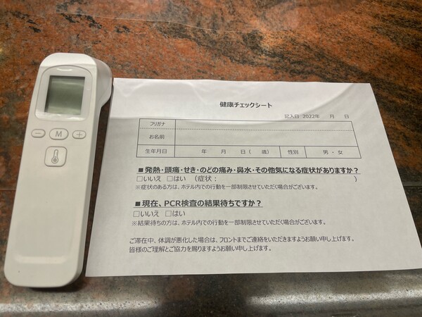 感染が再拡大していますが、引き続き感染対策を継続しております。当ホテルはチェックインの際、検温と健康チェックシートのご記入をお願いしております。発熱や体調の優れないお客様にはご宿泊をご遠慮いただく場合がございます。ご不便をおかけしますが、館内でのマスクの着用・アルコール消毒のご協力の程、よろしくお願い致します。